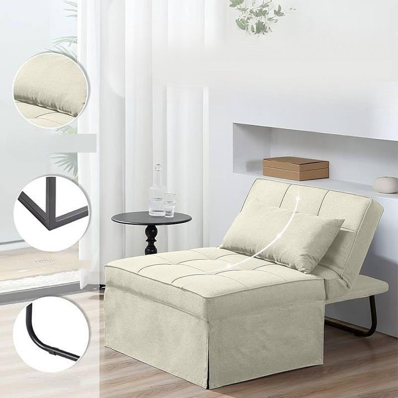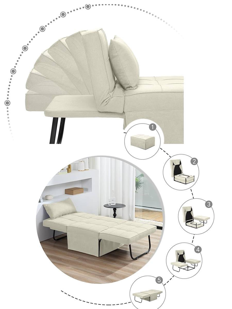 This multifunctional ottoman bed is the ultimate space-saving solution for small apartments, guest rooms, or studios. With a strong metal frame and high-quality fabric upholstery, it easily transforms between three modes: