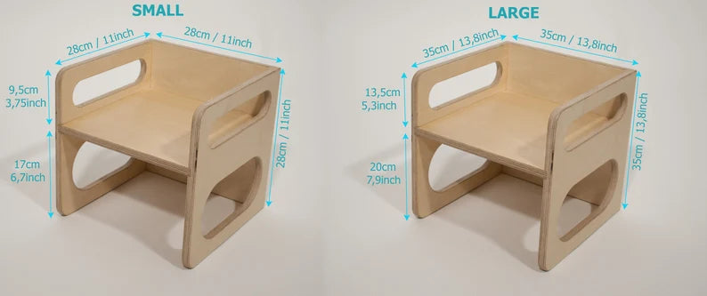 - Small Chair: 9.5cm/17cm seat heights, suitable for toddlers’ learning/playing, or as an adult footrest/short stool;