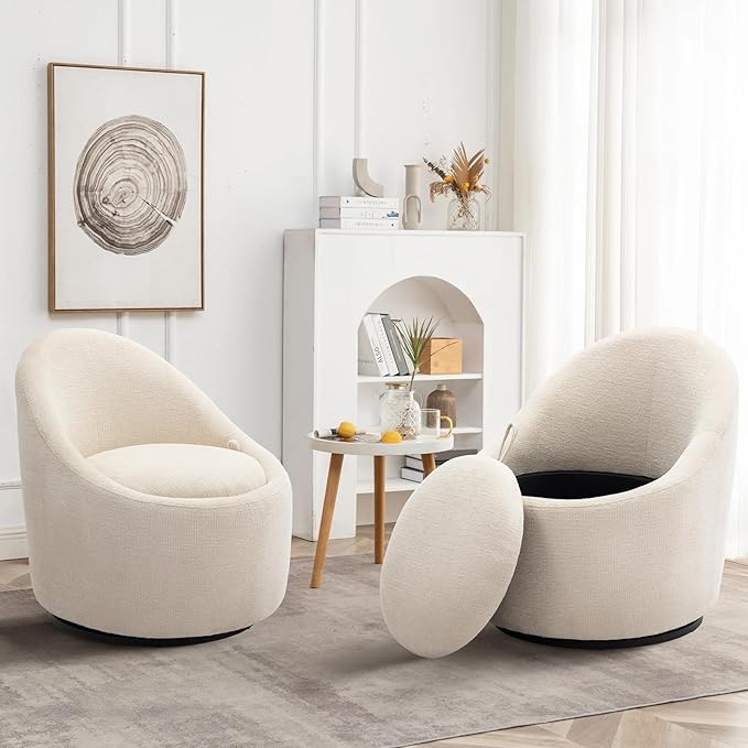 - ACCENT CHAIR WITH STORAGE: Featuring a compact and elegant build, our swivel accent chair includes a concealed storage compartment ideal for keeping essentials close. Perfect for organizing small items like books, blankets, or accessories without cluttering your space